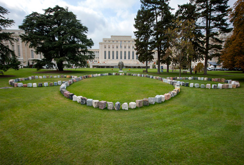 Michelangelo Pistoletto Rebirth, 2015 193 Steine, einen für jeden UN-Mitgliedstaat, permanente Installation im Park des Palais des Nations, Genf Foto: Enrico Amici © Michelangelo Pistoletto