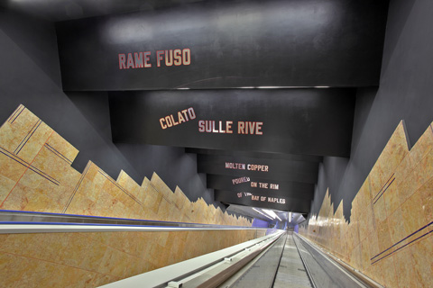 Lawrence Weiner Installation in the Toledo Station Collection Metropolitana di Napoli Courtesy Galleria Alfonso Artiaco, Napoli © 2014 ProLitteris, Zurich